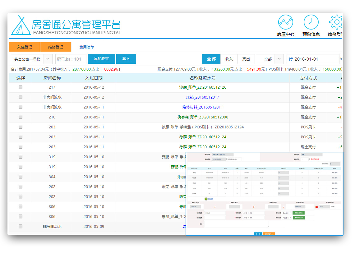 支付方式;房間費(fèi)用收支流水可追溯來源,收